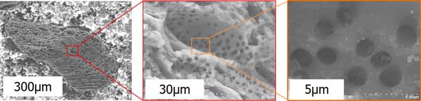 為實驗準備了兩種類型的樣品,無裂縫標本和帶裂縫的標本。樣品的尺寸為20×20×4mm。使用丙烯酸板形成裂縫。使用椰殼制備的載銀活性炭(活性炭+0.1%AgCl),并使用氯化銀實現銀的浸漬。盡管粉末粒度具有寬的尺寸分布,但250-500μm的顆粒占約90%的顆粒。圖2顯示了活性炭表面結構的掃描電子顯微鏡(SEM)圖像:發現其表面是多孔的,并且在大孔內部觀察到幾個中孔。在實驗期間使用恒電位儀在兩種條件下測量樣品的開路電位:與活性炭接觸和不接觸活性炭。在實驗之后,使用光學顯微鏡觀察樣品表面。測量在開路條件下進行近40小時(在中性溶液中)和24小時(在堿性溶液中)。